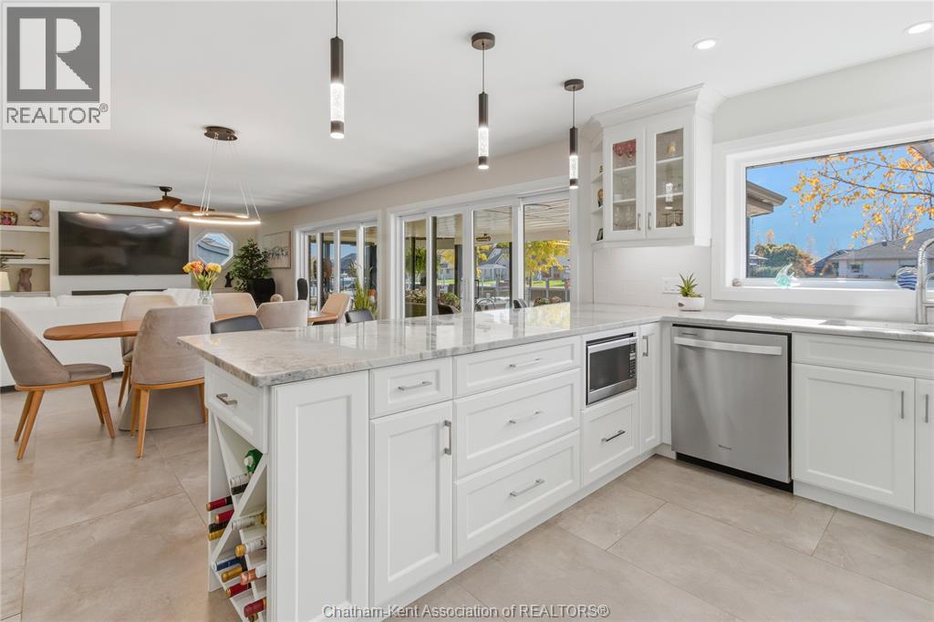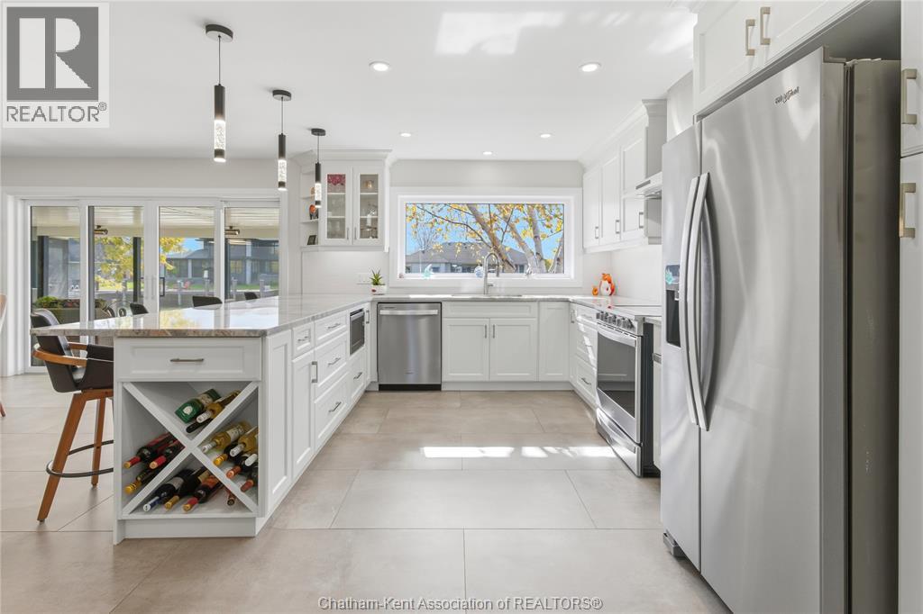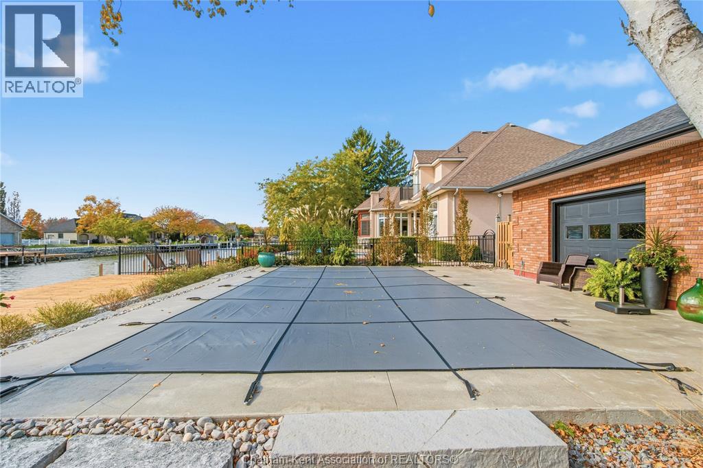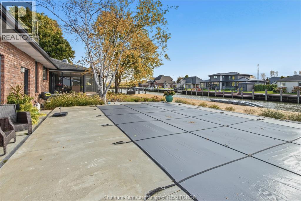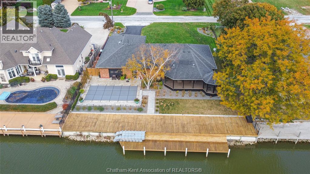 Enjoy the ultimate waterfront lifestyle with this beautifully updated modern ranch located on the main canal that leads to the marina and restaurant! Watch the boats pass by and soak in the waterfront vibes right from your own backyard. This desirable main-floor-living home showcases a stunning new kitchen with granite countertops, in-floor heating, and an open-concept design connecting into the living area, highlighted by a sleek gas fireplace with custom built-in cabinetry. Perfect for entertaining, the space opens through two patio doors to spacious fully screened in covered porch plus an inviting inground heated pool (installed late 2024) and a fenced yard. The spacious primary suite offers his and her closets and a luxurious 4pc ensuite complete with a freestanding tub, glass shower, and stylish finishes throughout. A second sitting room off the third bedroom provides a perfect space for guests to relax or enjoy the game in private. Step outside to enjoy peaceful evenings watching boats cruise by on the deep, desirable canal. A two-tiered dock offers convenient access to the water—ideal for boating, fishing, or simply enjoying the view. Whether you’re poolside or on the canal, this home truly offers the best of both worlds. Call today to experience this incredible waterfront property! (id:4555)