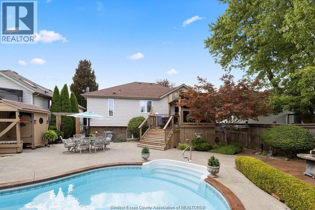 You're going to love this California Style Home with a Fantastic Backyard! Plenty of natural light welcomes you with hardwood and ceramic through-out main floor, including living room, formal dining and updated kitchen with cathedral ceilings, primary bedroom features walk-in closet and cheater door to luxurious bath with jacuzzi tub, glass shower and custom vanity. Lower level has been wonderfully finished with custom bar, family room with gas fireplace, additional bedroom and full bath. Entertainers dream backyard with in-ground heated pool, private BBQ lounge area, gas firepit patio, even an outdoor bath/change room. Updates: Furnace & A/C '2024, Concrete Work '25, Roof '16. Walk to 2 area schools, parks and shopping! (id:4555)