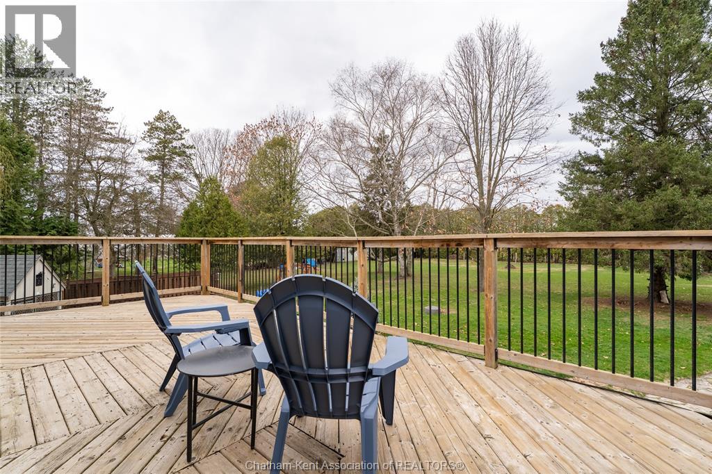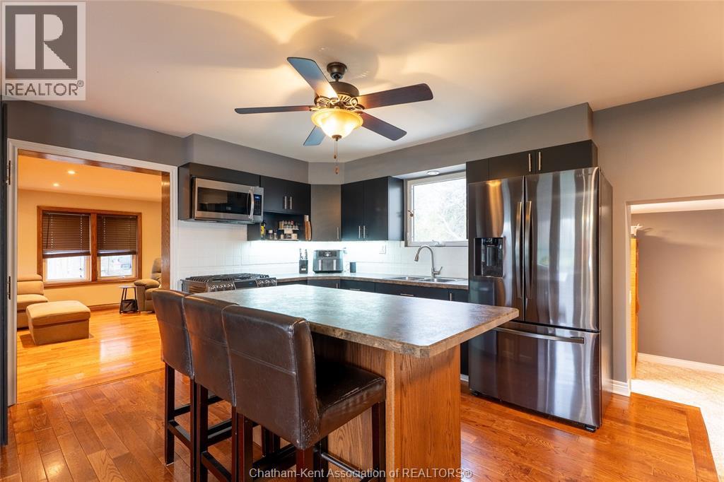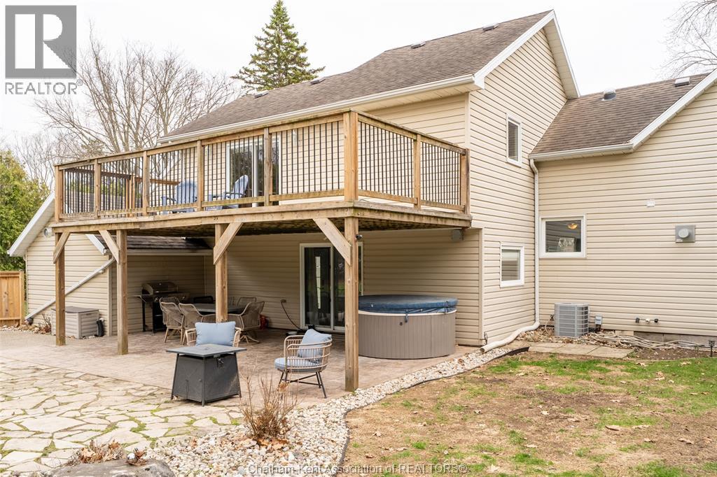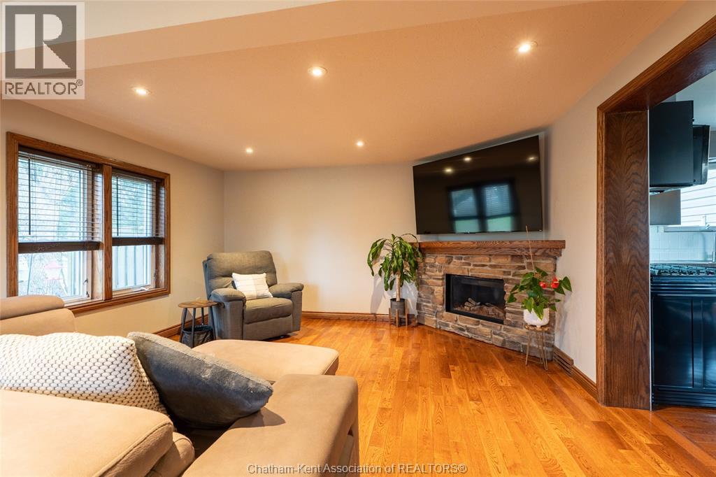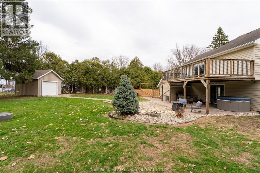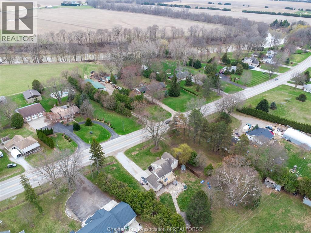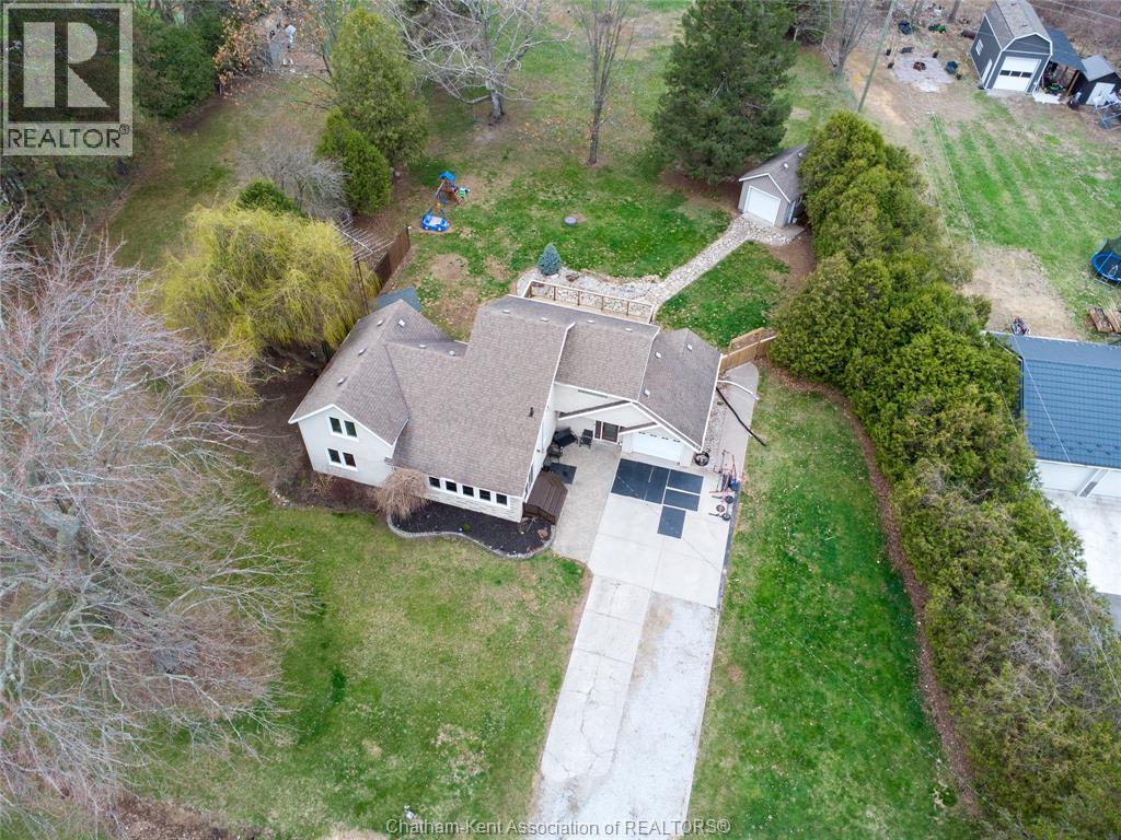Spacious country living on 1.5 acres just outside of Thamesville, perfectly situated between Thamesville and Chatham on a paved road with natural gas! Set on a very private, tree-lined lot, this property offers both space and seclusion. This well-maintained home features over 2,200 sq ft of living space with 3 bedrooms and 2 full bathrooms, ideal for families looking for room to grow. The main floor showcases hardwood flooring throughout, a large open-concept kitchen and dining area perfect for entertaining, and a welcoming living room with a cozy gas fireplace. Patio doors lead out to a covered patio, creating a great space to relax and enjoy the peaceful surroundings. Upstairs, you’ll find three generously sized bedrooms, including an impressive primary suite featuring its own gas fireplace, his and hers closets, and access to a private balcony overlooking the entire property. The additional bedrooms are all spacious and functional. The home also offers a heated attached garage with natural gas, along with a detached garage at the rear of the property—ideal for extra storage, hobbies, or workspace. Updates include a natural gas furnace and central air (2020), eavestroughs with gutter guards (2020), and asphalt shingles (2015). The basement includes a sump pump and provides plenty of storage space. The property is serviced by clean, potable well water. A fantastic opportunity to enjoy private country living with modern comforts, all within a convenient distance to nearby towns and amenities. (id:4555)
