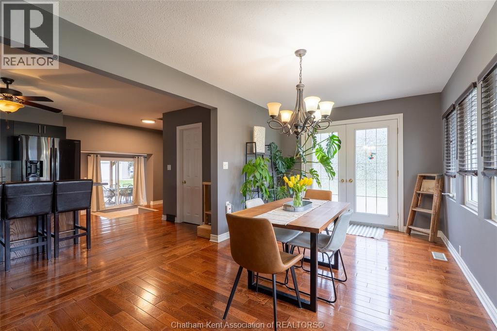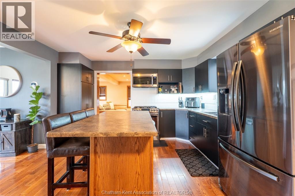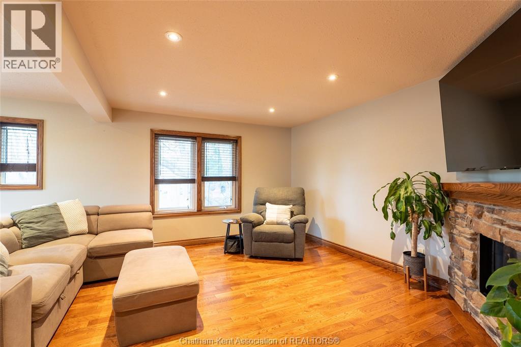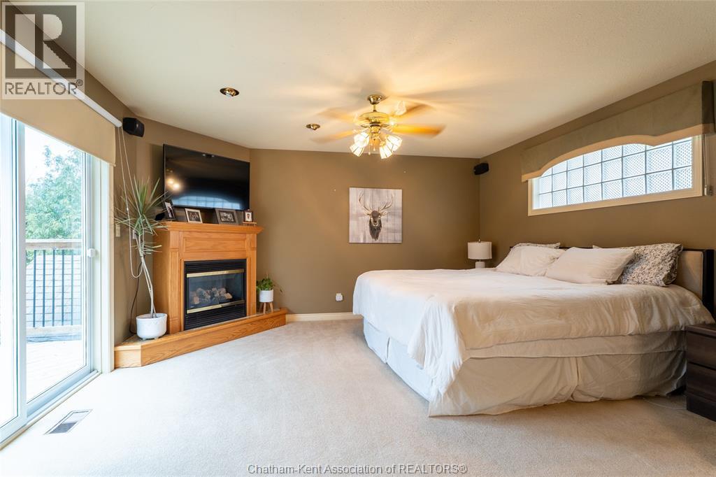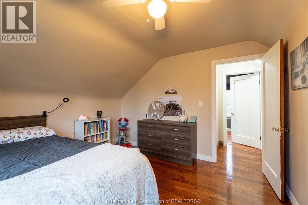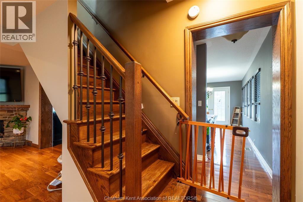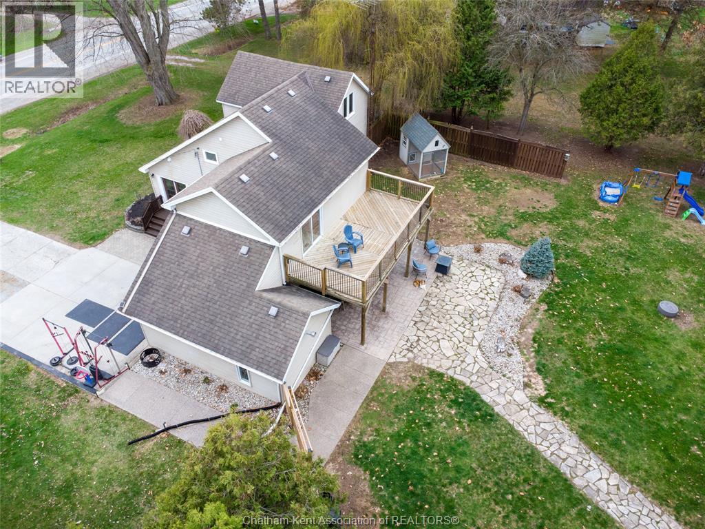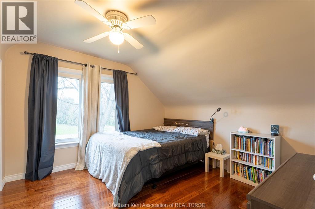 Spacious country living on 1.5 acres just outside of Thamesville, perfectly situated between Thamesville and Chatham on a paved road with natural gas! Set on a very private, tree-lined lot, this property offers both space and seclusion. This well-maintained home features over 2,200 sq ft of living space with 3 bedrooms and 2 full bathrooms, ideal for families looking for room to grow. The main floor showcases hardwood flooring throughout, a large open-concept kitchen and dining area perfect for entertaining, and a welcoming living room with a cozy gas fireplace. Patio doors lead out to a covered patio, creating a great space to relax and enjoy the peaceful surroundings. Upstairs, you’ll find three generously sized bedrooms, including an impressive primary suite featuring its own gas fireplace, his and hers closets, and access to a private balcony overlooking the entire property. The additional bedrooms are all spacious and functional. The home also offers a heated attached garage with natural gas, along with a detached garage at the rear of the property—ideal for extra storage, hobbies, or workspace. Updates include a natural gas furnace and central air (2020), eavestroughs with gutter guards (2020), and asphalt shingles (2015). The basement includes a sump pump and provides plenty of storage space. The property is serviced by clean, potable well water. A fantastic opportunity to enjoy private country living with modern comforts, all within a convenient distance to nearby towns and amenities. (id:4555)