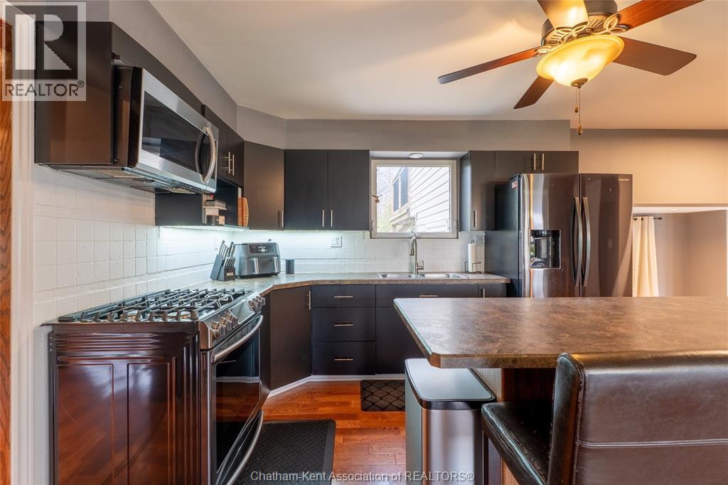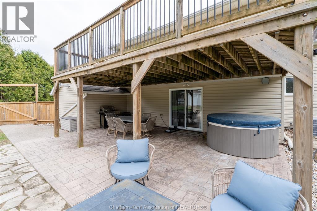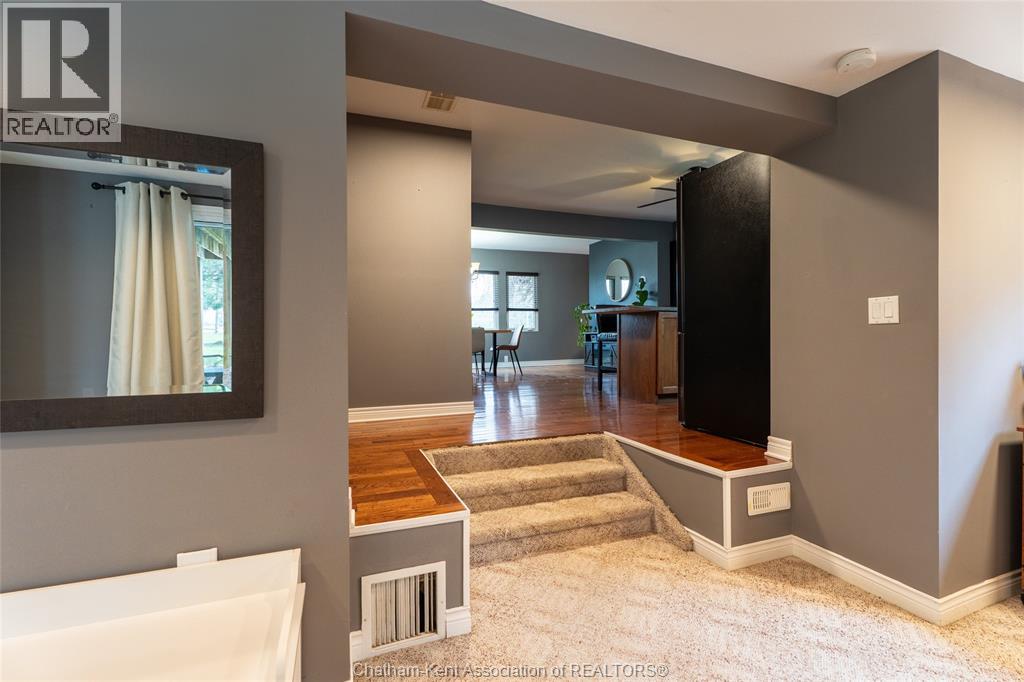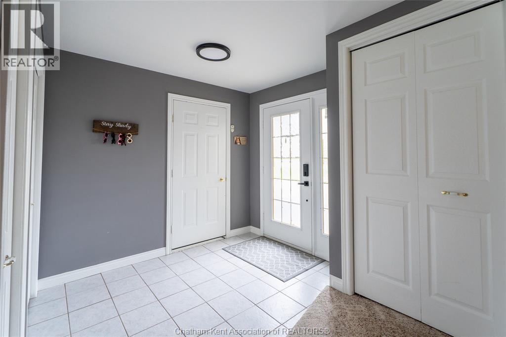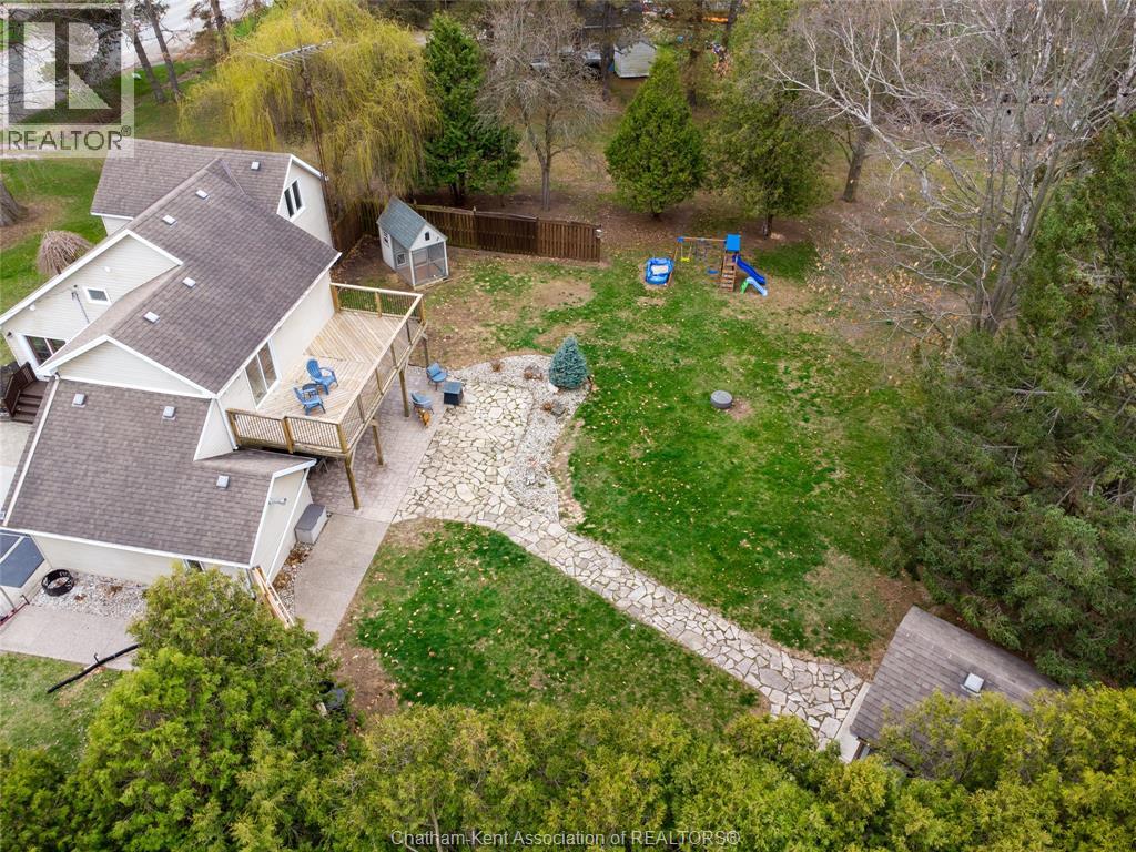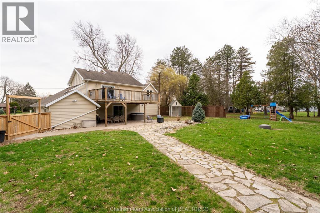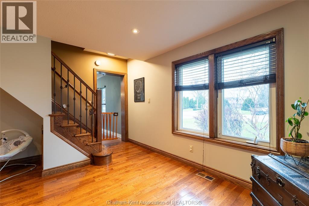 Spacious country living on 1.5 acres just outside of Thamesville, perfectly situated between Thamesville and Chatham on a paved road with natural gas! Set on a very private, tree-lined lot, this property offers both space and seclusion. This well-maintained home features over 2,200 sq ft of living space with 3 bedrooms and 2 full bathrooms, ideal for families looking for room to grow. The main floor showcases hardwood flooring throughout, a large open-concept kitchen and dining area perfect for entertaining, and a welcoming living room with a cozy gas fireplace. Patio doors lead out to a covered patio, creating a great space to relax and enjoy the peaceful surroundings. Upstairs, you’ll find three generously sized bedrooms, including an impressive primary suite featuring its own gas fireplace, his and hers closets, and access to a private balcony overlooking the entire property. The additional bedrooms are all spacious and functional. The home also offers a heated attached garage with natural gas, along with a detached garage at the rear of the property—ideal for extra storage, hobbies, or workspace. Updates include a natural gas furnace and central air (2020), eavestroughs with gutter guards (2020), and asphalt shingles (2015). The basement includes a sump pump and provides plenty of storage space. The property is serviced by clean, potable well water. A fantastic opportunity to enjoy private country living with modern comforts, all within a convenient distance to nearby towns and amenities. (id:4555)