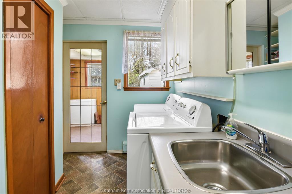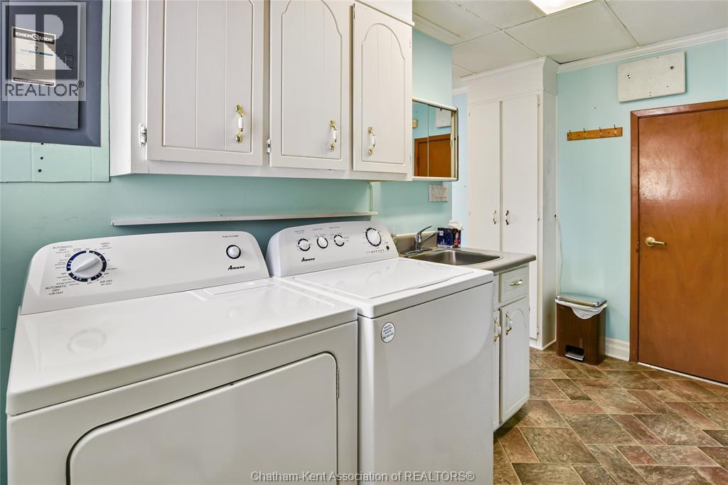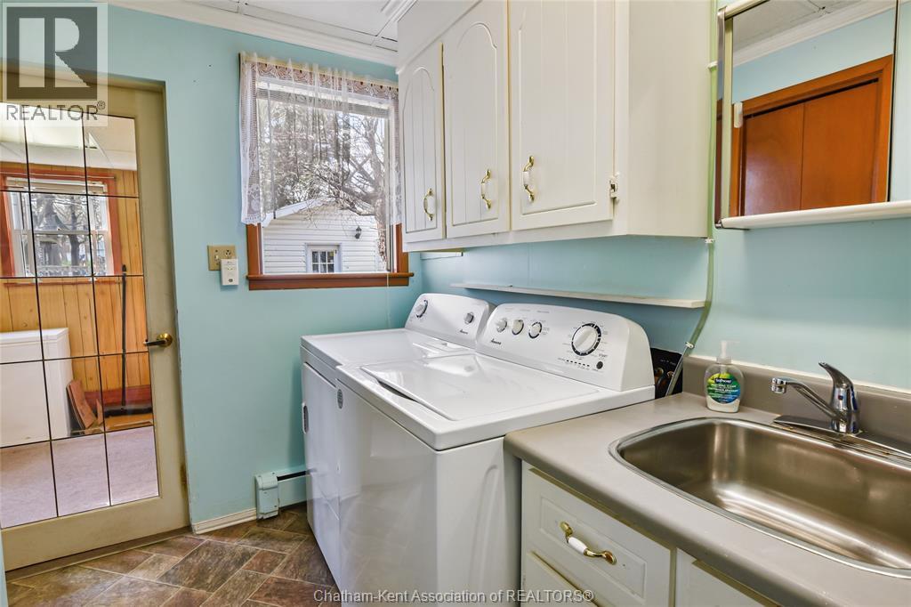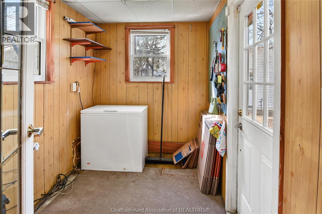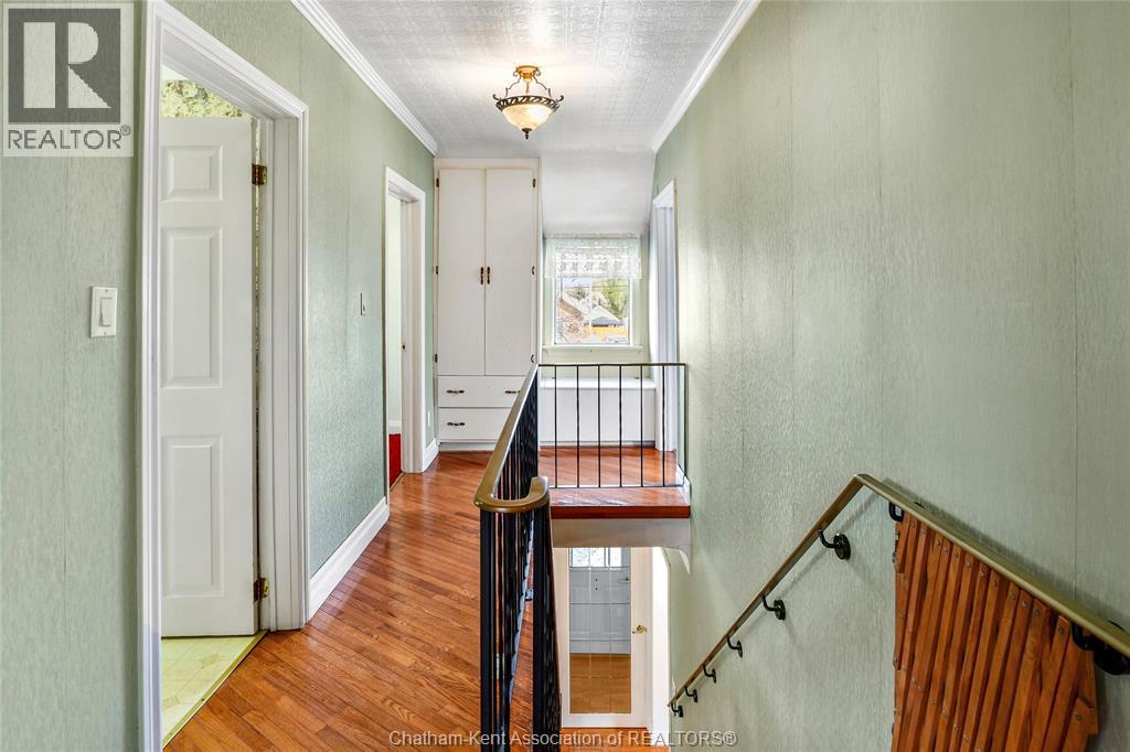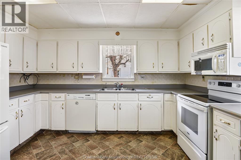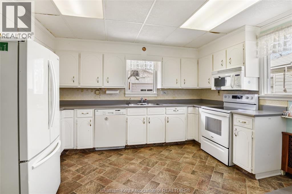 Searching for a large family home? look no further - 4 bedroom, 2 storey with 1852 square feet in the desirable town of Blenheim. Side entrance into eat-in kitchen, nice size formal dining, front entrance foyer with glass door. Living room, main floor bedroom, 1 pc bath, main floor laundry and rear mudroom/utility. Upper level has 3 bedrooms, full bath plus a very unique upper level family room. Good lot and location close to uptown, partially fenced rear with the bonus of a detached garage, storage or workshop. Interlocking brick drive, rear wooden deck area and nice front porch for the morning sun. Difficult to find a 4 bedroom home in an affordable price range with all of these unique features. Heating system is natural gas hot water boiler, plus two mini split units for central air in the summer. (id:4555)