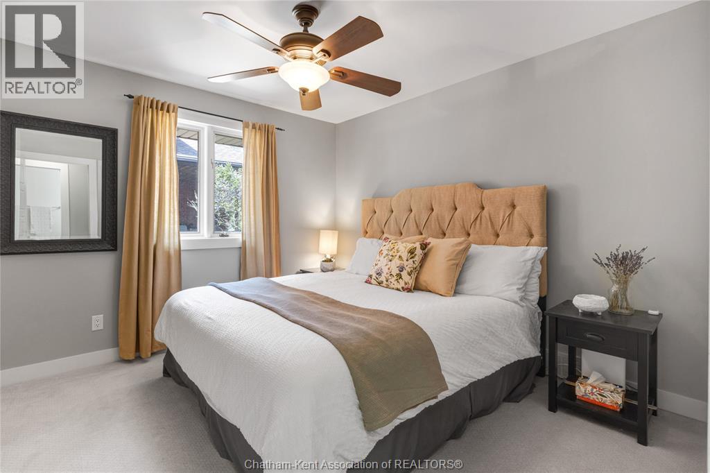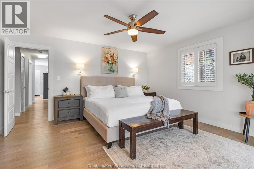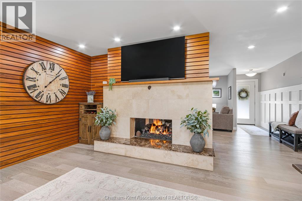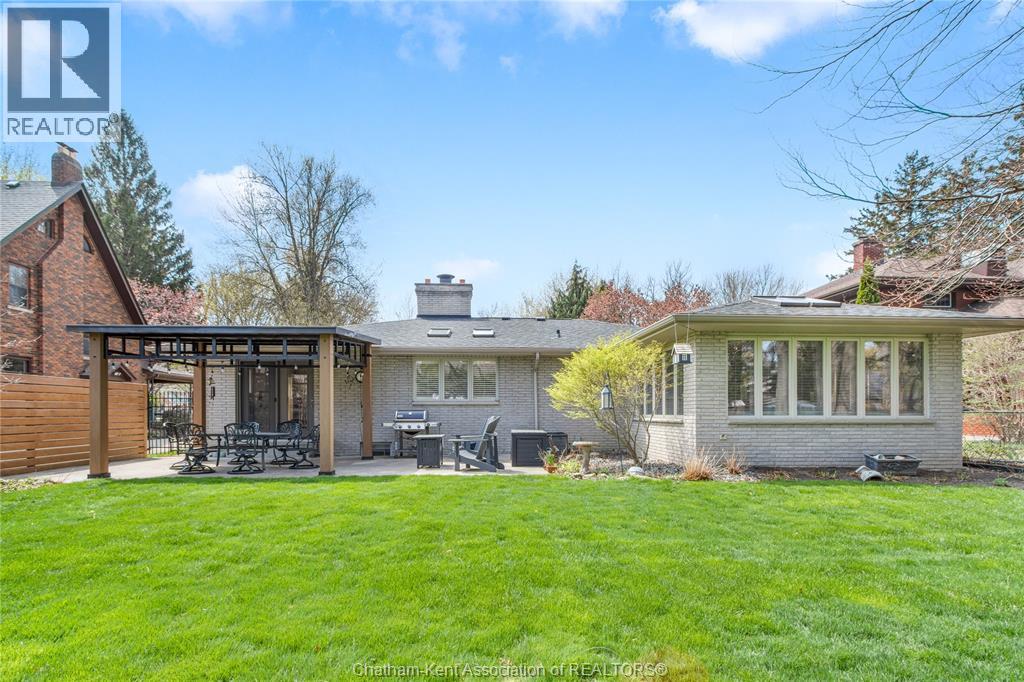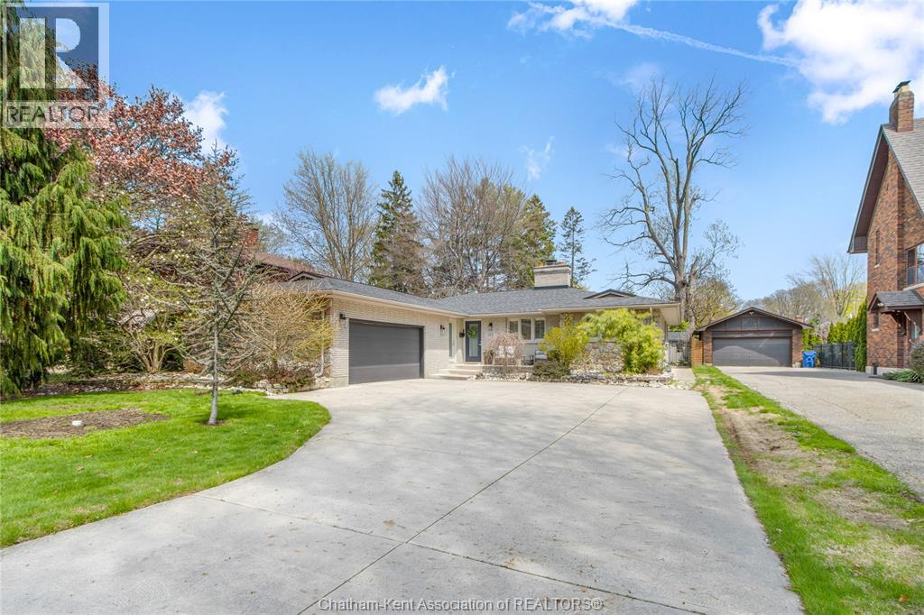 Located on one of Chatham’s most prestigious streets, this all-brick ranch offers modern touches and pride of ownership. From the moment you arrive, the curb appeal sets the tone but you’ll be pleasantly surprised the moment you open the door. Inside, you’re greeted by a stunning double-sided gas fireplace presenting two inviting entertainment spaces, crafting a modern yet cozy atmosphere. Enjoy beautiful hardwood flooring, california shutters, stylish woodwork and many thoughtful updates. The dining area comfortably accommodates large gatherings and connects into a custom Leeds kitchen, featuring quartz countertops and patio door access to a fully fenced backyard, complete with a covered gazebo and storage shed. The expansive primary suite stretches an impressive 28 feet, offering a lounge area bathed in natural light. The ensuite features a double vanity with quartz countertop , and a walk-in glass-tiled shower. Two additional good sized bedrooms and a three-piece bath complete the main floor. Downstairs, the full basement offers a spacious den, or secondary family room, a two-piece bath,storage room, and cold room offering plenty of storage or future development! Outside, a deep lot equipped with an irrigation system, long concrete driveway, and a double attached garage round out the incredible curb appeal. This is a rare opportunity to secure your place in this sought-after location! (id:4555)
