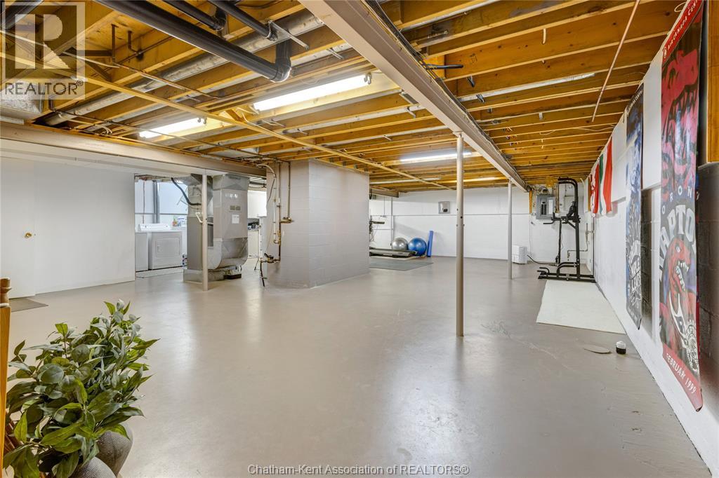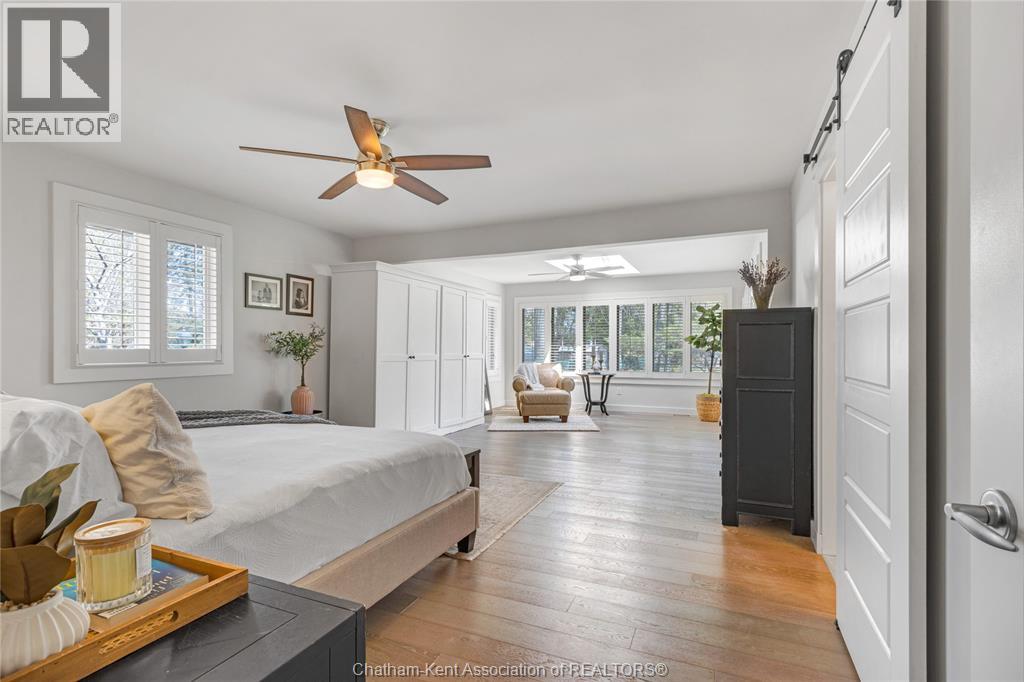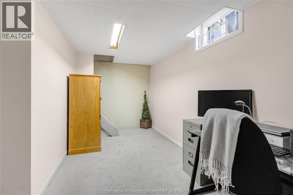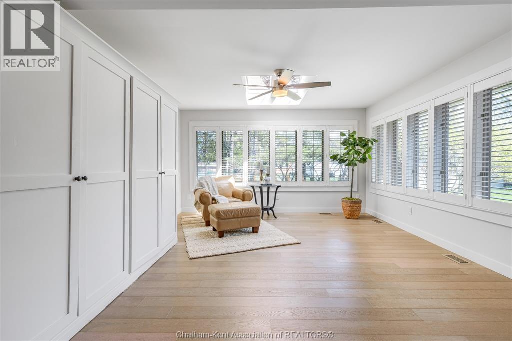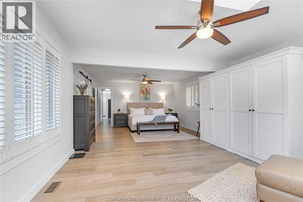 Located on one of Chatham’s most prestigious streets, this all-brick ranch offers modern touches and pride of ownership. From the moment you arrive, the curb appeal sets the tone but you’ll be pleasantly surprised the moment you open the door. Inside, you’re greeted by a stunning double-sided gas fireplace presenting two inviting entertainment spaces, crafting a modern yet cozy atmosphere. Enjoy beautiful hardwood flooring, california shutters, stylish woodwork and many thoughtful updates. The dining area comfortably accommodates large gatherings and connects into a custom Leeds kitchen, featuring quartz countertops and patio door access to a fully fenced backyard, complete with a covered gazebo and storage shed. The expansive primary suite stretches an impressive 28 feet, offering a lounge area bathed in natural light. The ensuite features a double vanity with quartz countertop , and a walk-in glass-tiled shower. Two additional good sized bedrooms and a three-piece bath complete the main floor. Downstairs, the full basement offers a spacious den, or secondary family room, a two-piece bath,storage room, and cold room offering plenty of storage or future development! Outside, a deep lot equipped with an irrigation system, long concrete driveway, and a double attached garage round out the incredible curb appeal. This is a rare opportunity to secure your place in this sought-after location! (id:4555)